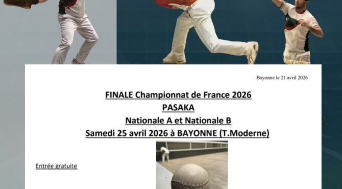 Samedi 25 avril finales pasaka championnat de France à Bayonne entrée gratuite – Apirilak 25, larunbata, Pasaka Frantziako Txapelketako finalak Baionan, sarrera doan